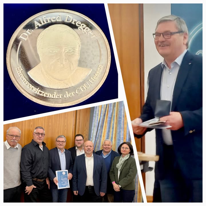 mehr🥈CDU ehrt Reinhard Otto mit Alfred-Dregger-Medaille 🥈Die CDU Schwalmstadt gratuliert ihrem langjährigen Mitglied Reinhard Otto zur Verleihung der Alfred-Dregger-Medaille und würdigt damit sein jahrzehntelanges, herausragendes Engagement für die Stadt Schwalmstadt und den Schwalm-Eder Kreis.Die Alfred-Dregger-Medaille wird an Persönlichkeiten verliehen, die sich in besonderer Weise um das politische Ehrenamt verdient gemacht haben.Vorbildlicher Einsatz für Schwalmstadt und die CDU"Reinhard Otto hat die CDU Schwalmstadt über Jahrzehnte hinweg mit Herzblut, Fachwissen und Beharrlichkeit mitgestaltet. Sein Einsatz für die Stadt Schwalmstadt und die Partei ist vorbildlich. Er hat mit seiner Arbeit tiefe Spuren hinterlassen und ist für viele in der Partei und darüber hinaus ein Vorbild. Diese Ehrung ist mehr als verdient, und wir sind stolz, ihn in unseren Reihen zu wissen", so Karsten Schenk für den Vorstand der CDU Schwalmstadt.Auch in Zukunft bleibt Reinhard Otto dem Stadtverband als wertvoller Ratgeber erhalten. So ist er wieder der Spitzenkandidat der CDU Schwalmstadt bei der kommenden Kommunalwahl am 15. März 2026. Die CDU Schwalmstadt dankt ihm für sein herausragendes Engagement und freut sich auf viele weitere Jahre der Zusammenarbeit.#wirfürschwalmstadt #Schwalmstadt #Konfirmationsstadt #Allendorf #Michelsberg #Rörshain #Niedergrenzebach #Trutzhain #Ziegenhain #Ascherode #Treysa #Wiera #Florshain #Frankenhain #Rommershausen #Dittershausen #CDU #bürgerwille #heyschwalmstadt #politik #kommunalpolitik #vorort #entdeckeschwalmstadt #weilesumunsereheimatgeht #heimatistherzenssache #heimatfürfleißige #wiedernachvorne