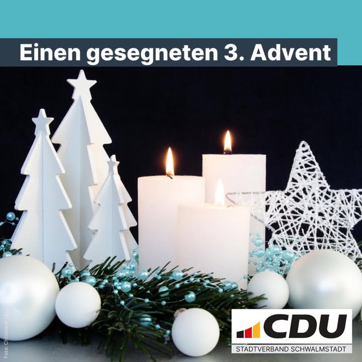 mehrDer 3. Advent - Drei Kerzen erleuchten den Weg und erinnern uns an die Freude, die mit Christi Geburt in die Welt kam. 🕯️🕯️🕯️ Lasst uns die Freude teilen!#advent #wirfürschwalmstadt #Schwalmstadt #Konfirmationsstadt #Allendorf #Michelsberg #Rörshain #Niedergrenzebach #Trutzhain #Ziegenhain #Ascherode #Treysa #Wiera #Florshain #Frankenhain #Rommershausen #Dittershausen #CDU #bürgerwille #heyschwalmstadt #politik #kommunalpolitik #vorort #entdeckeschwalmstadt #weilesumunsereheimatgeht #heimatistherzenssache #heimatfürfleißige #wiedernachvorne