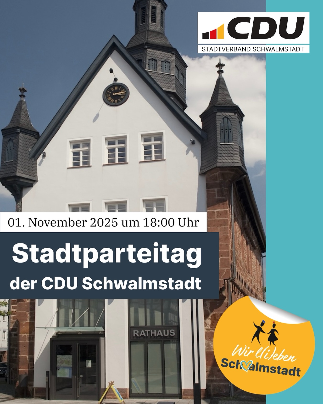 Die CDU Schwalmstadt lädt alle Bürgerinnen und Bürger herzlich zum diesjährigen Schwalmstädter Gespräch am Freitag, 07. November 2025, um 18:00 Uhr im Dorfgemeinschaftshaus Michelsberg ein.