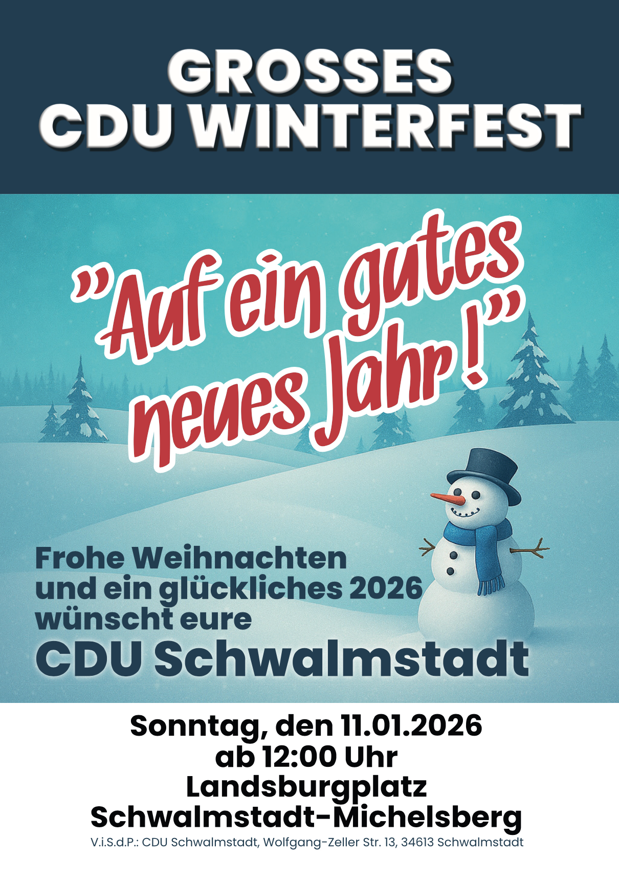 Die CDU Schwalmstadt lädt alle Bürgerinnen und Bürger herzlich zum diesjährigen Schwalmstädter Gespräch am Freitag, 07. November 2025, um 18:00 Uhr im Dorfgemeinschaftshaus Michelsberg ein.